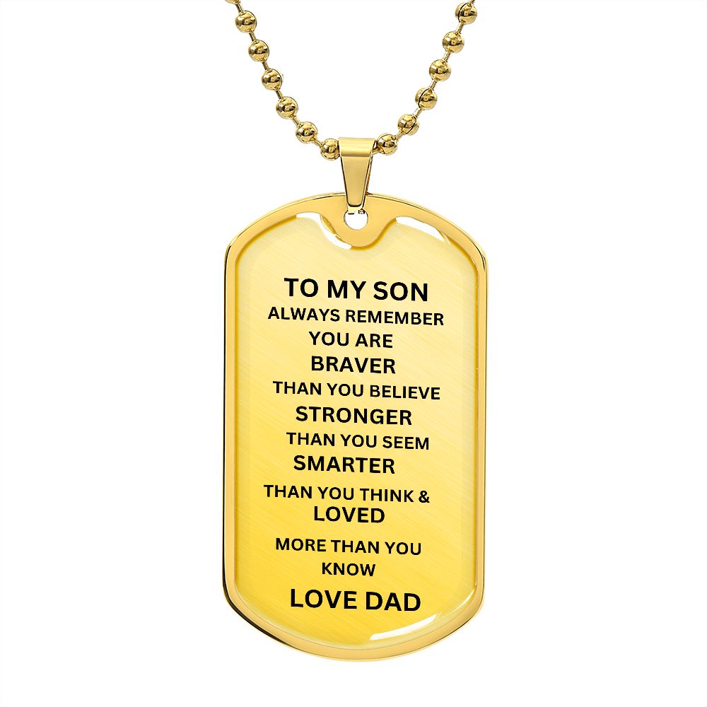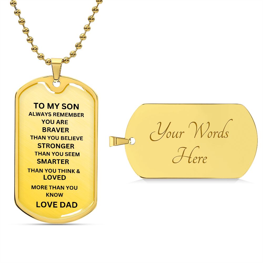 BLACK AND SILVER DOG TAG. TO MY SON. LOVE DAD