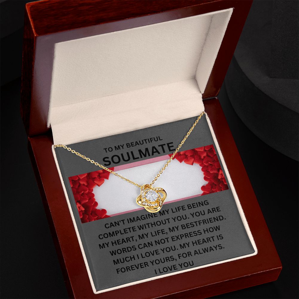 TO MY BEAUTIFUL SOULMATE. LOVE KNOT NECKLACE.