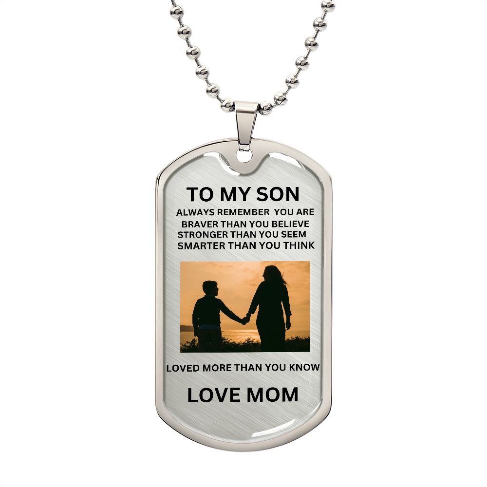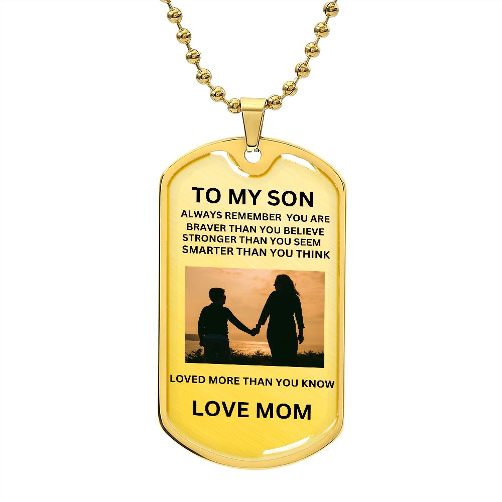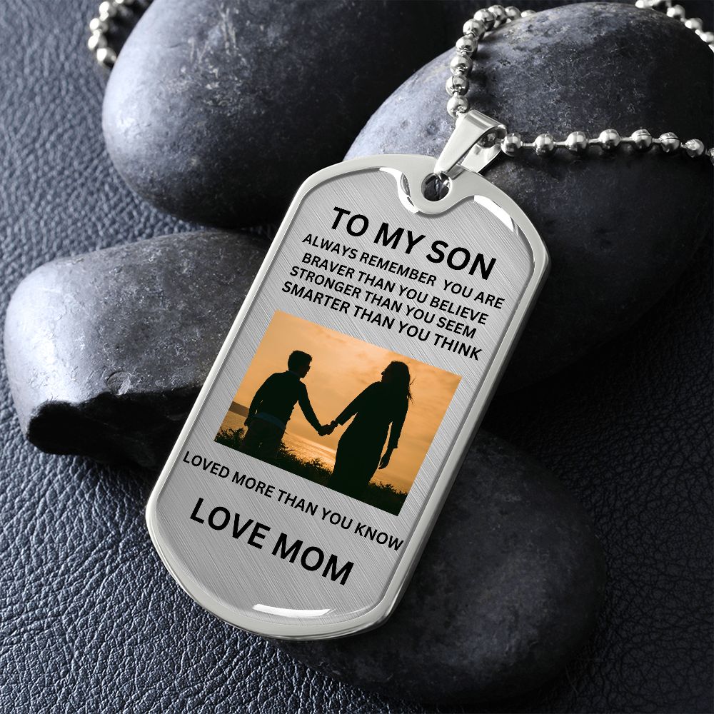 TO MY SON ALWAYS REMEMEBER YOU ARE BRAVER... DOG TAG LOVE MOM