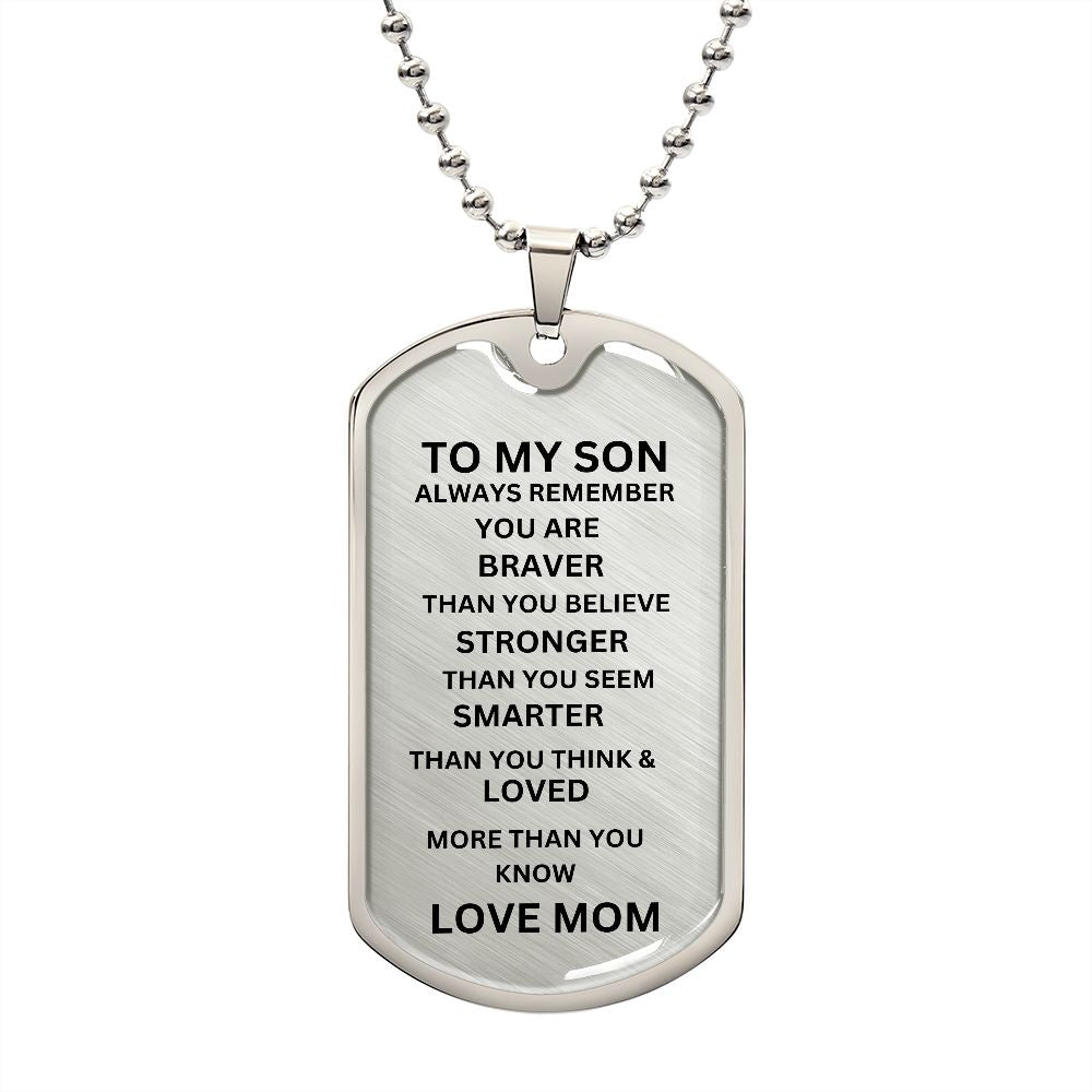 TO MY SON BLACK SILVER DOG TAG. LOVE MOM